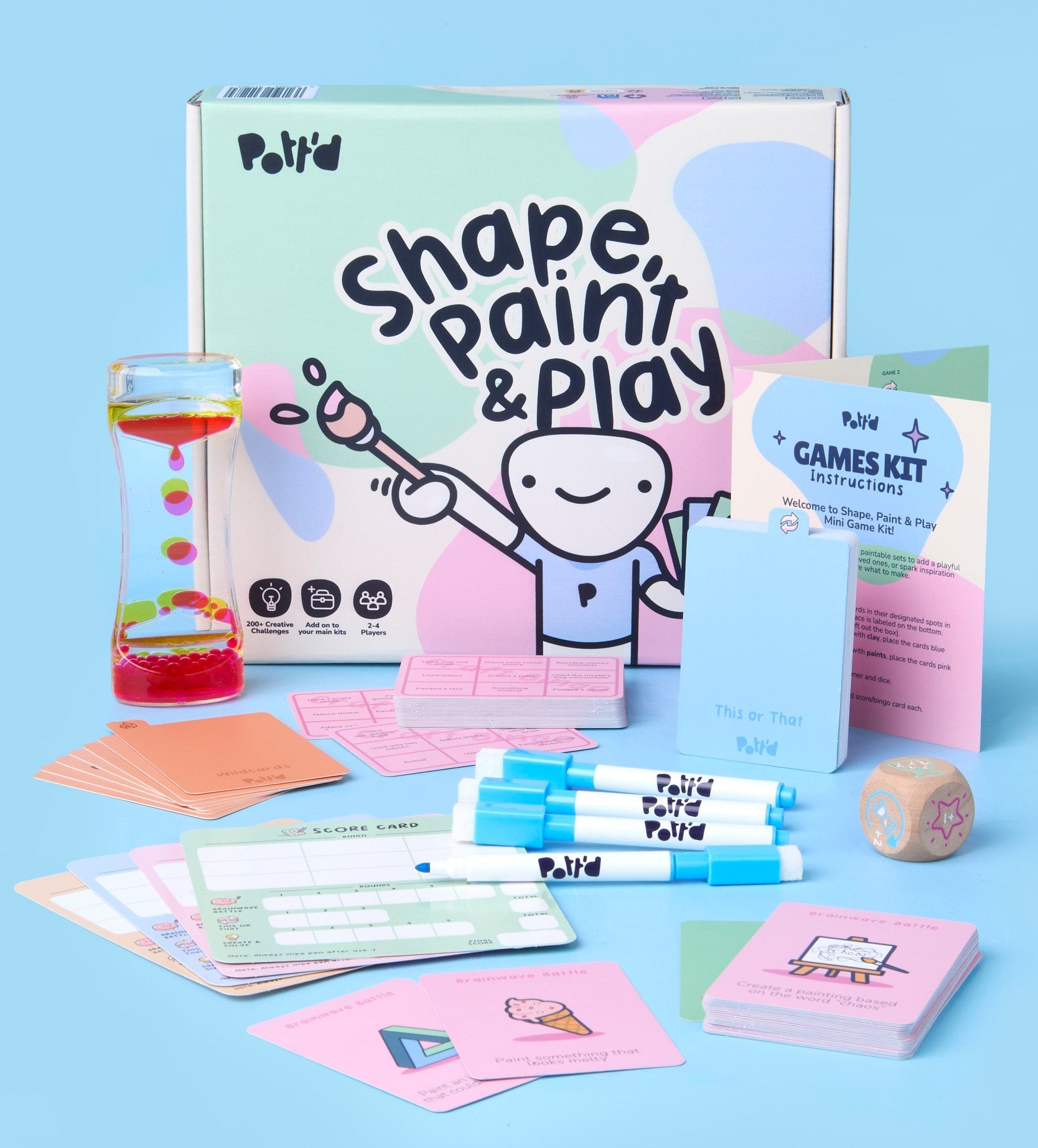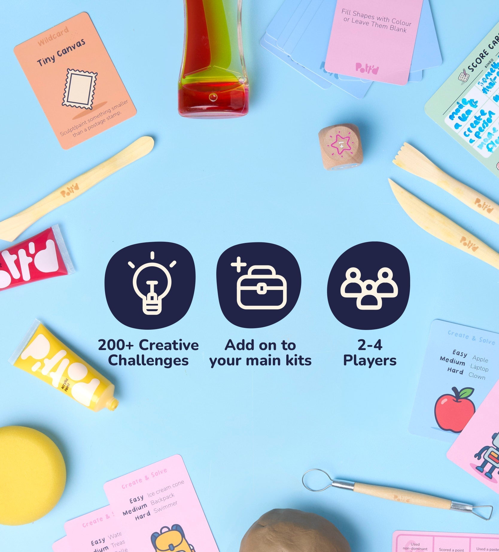 Designed to work alongside all our air dry clay, foam clay, polymer clay and painting kits, Shape, Paint & Play is ideal for family nights, parties, date nights or group crafting sessions. Roll the dice, draw a card and see where the game takes you.