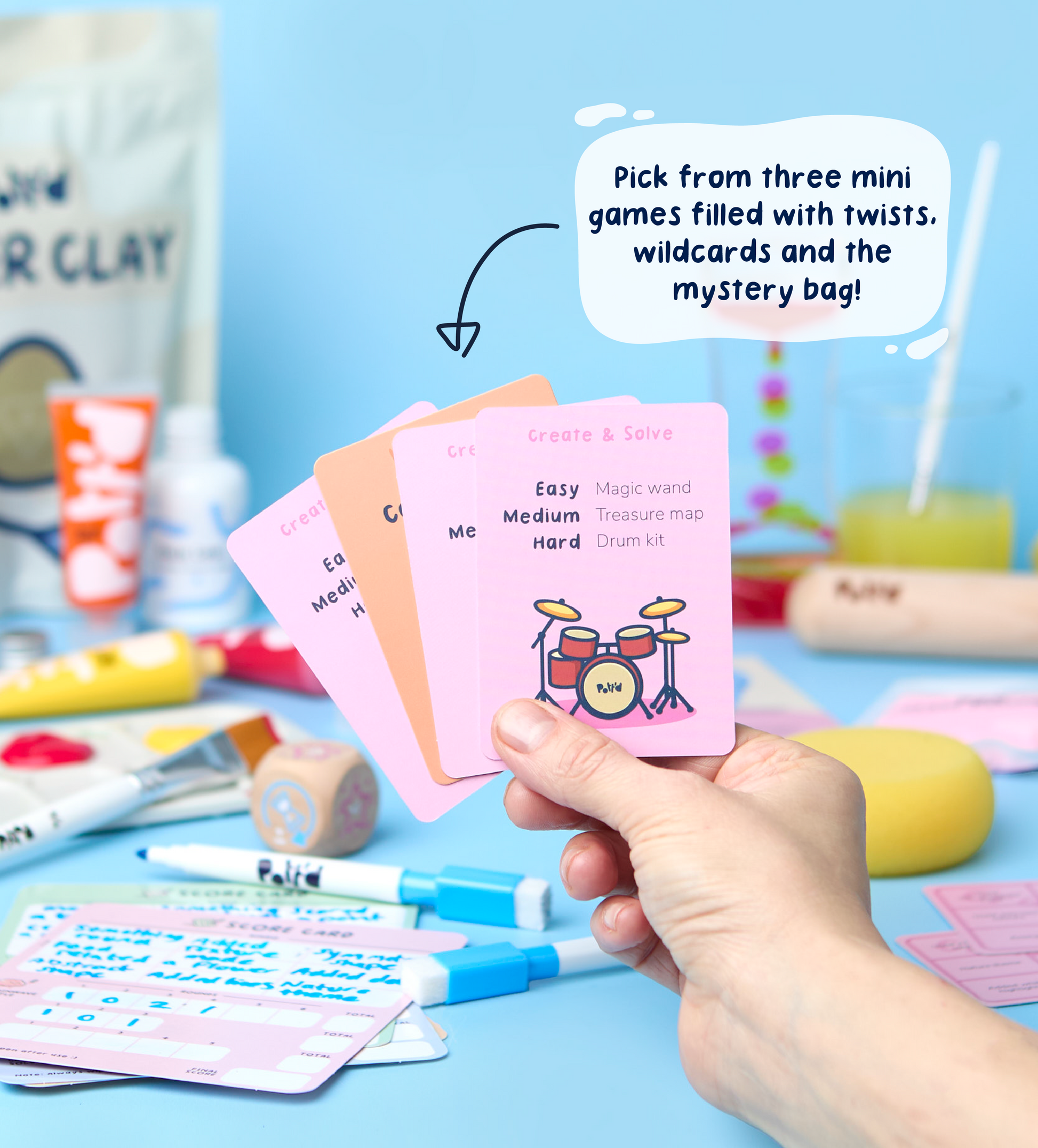 Add a little friendly competition to your creative time with Shape, Paint & Play. This playful games add-on turns any crafting session into a hands-on challenge, with mini games, a timer, scorecards and surprises designed for up to four players. Whether you’re shaping clay, painting ceramics or playing with foam dough, it’s the perfect way to mix creativity with laughs, quick rounds and a bit of light-hearted rivalry.