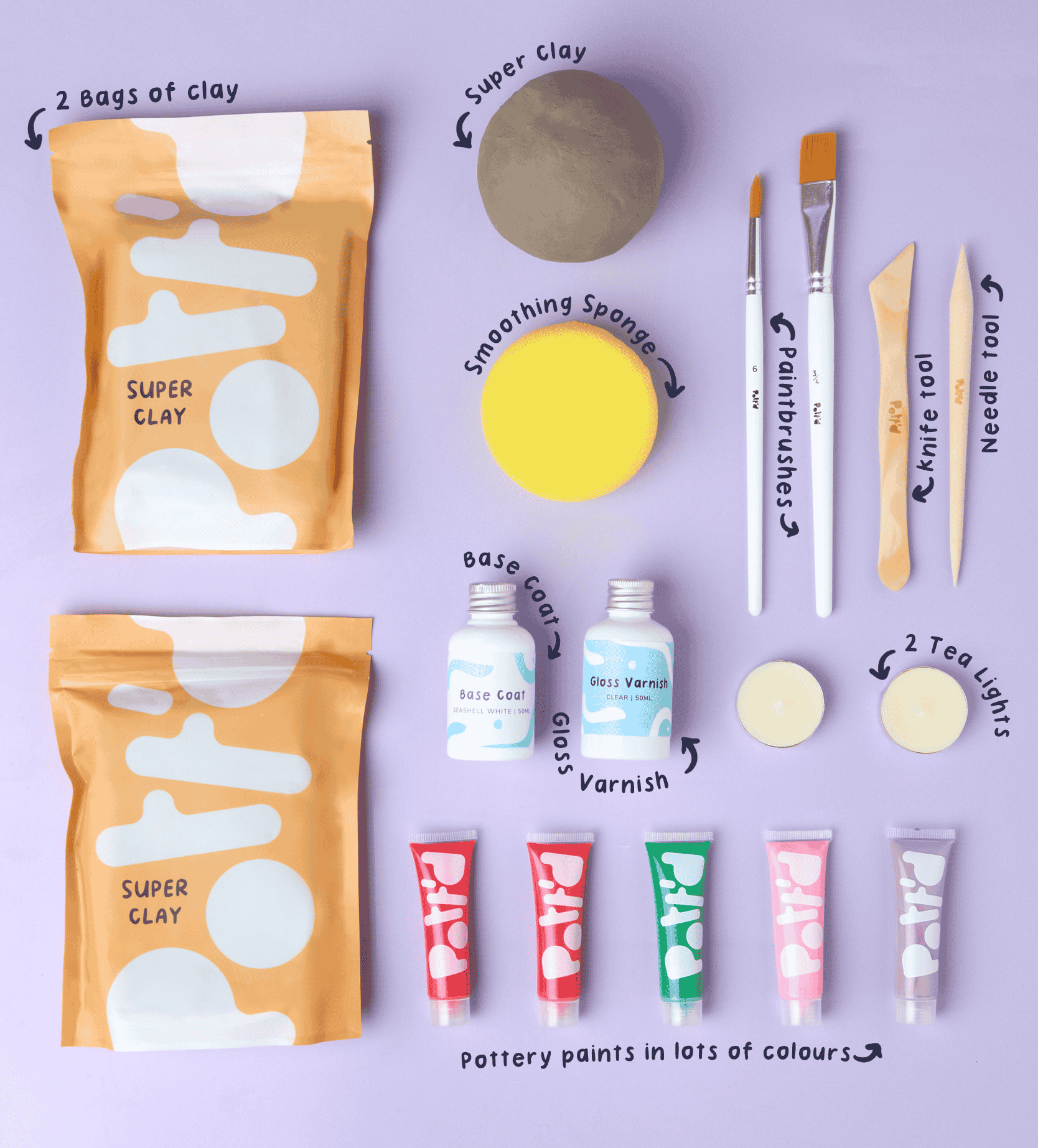 Our kits use 90% recycled and recyclable materials, and our Super Clay is vegan and cruelty-free. All materials are totally non-toxic, both for you and the planet.