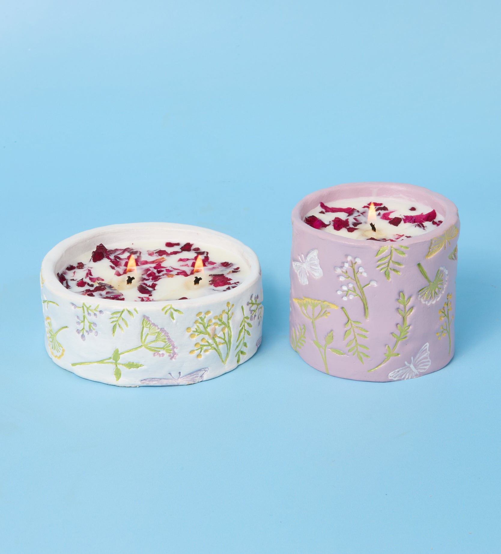 Bring the beauty of nature indoors with the Wildflower Candle. This creative kit lets you craft two stunning candles from scratch, using a blend of clay and wax. The included wildflower and butterfly stamps let you imprint intricate designs onto the clay, creating a beautiful textured effect.
